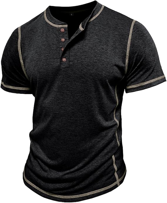 Mens Short Sleeve Shirts Casual Cotton Basic Henley Shirts Summer Lightweight T-Shirts
